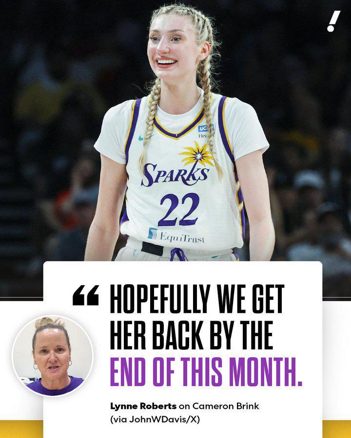 雷速体育7月13日讯 据洛杉矶火花主帅林恩·罗伯茨透露,布林克有可能会在7月底回归复出。